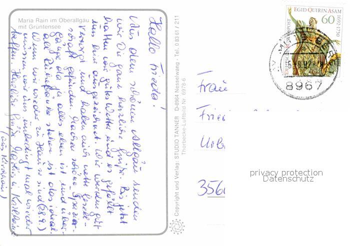 72882053 alte Postkarte Maria Rain Allgaeu mit Gruentensee Allgaeuer Alpen Fliegeraufnahme postalisch gelaufen Erhaltung siehe scans [FriedD77] KatCode: 11110009780128