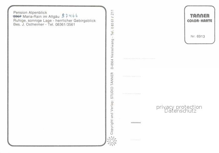 72764193 Maria Rain Allgaeu Pension Alpenblick postalisch nicht gelaufen Erhaltung siehe scans [NatalD47] KatCode: 11110009780128