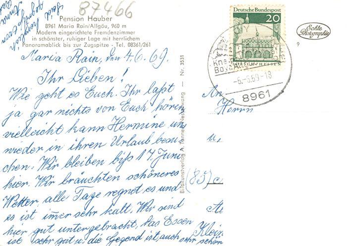 73888338 alte Postkarte Maria Rain Allgaeu Pension Hauber Gastraum Panorama postalisch gelaufen Erhaltung siehe scans [WerneD78] KatCode: 11110009780128