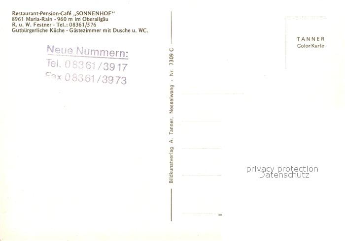 73643347 Maria Rain Allgaeu Restaurant Pension Cafe Sonnenhof Gastraeume postalisch nicht gelaufen Erhaltung siehe scans [WerneD78] KatCode: 11110009780128
