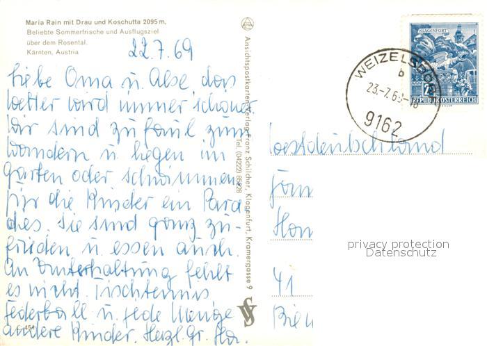 73161355 alte Postkarte Maria Rain Kaernten Drau Koschutta Fliegeraufnahme postalisch gelaufen Erhaltung siehe scans [KathaD81] KatCode: 11390211020417