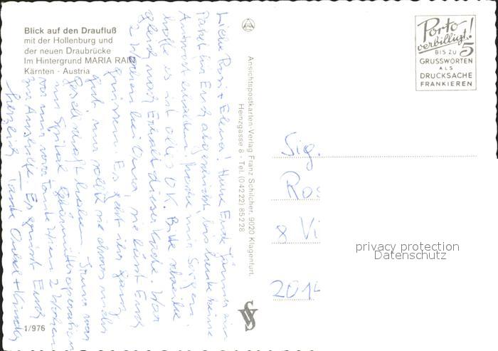 72283560 Maria Rain Kaernten Draufluss Draubruecke Hollenburg Fliegeraufnahme postalisch nicht gelaufen Erhaltung siehe scans KatCode: 11390211020417