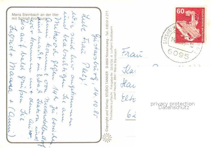 72836294 alte Postkarte Maria Steinbach Schloss Kronburg Fliegeraufnahme postalisch gelaufen Erhaltung siehe scans [NatalD47] KatCode: 11110009778165
