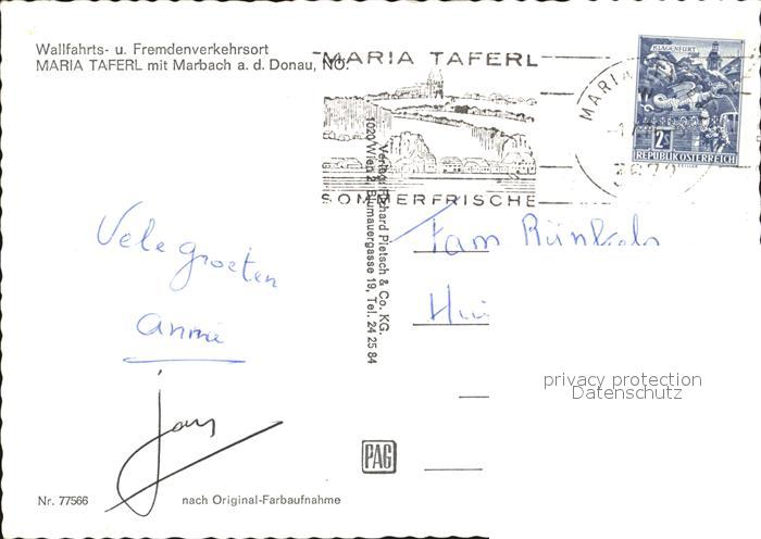 72505351 alte Postkarte Maria Taferl Blick von der Donau mit Personenschiff postalisch gelaufen Erhaltung siehe scans KatCode: 11390121031523
