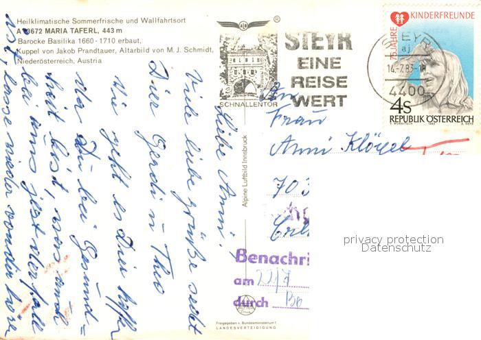 73236853 alte Postkarte Maria Taferl Fliegeraufnahme Barocke Basilika postalisch gelaufen Erhaltung siehe scans [KathaD81] KatCode: 11390121031523