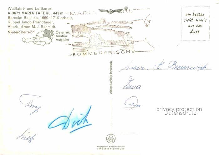 72662707 alte Postkarte Maria Taferl Fliegeraufnahme Barocke Basilika postalisch gelaufen Erhaltung siehe scans [AndreD76] KatCode: 11390121031523