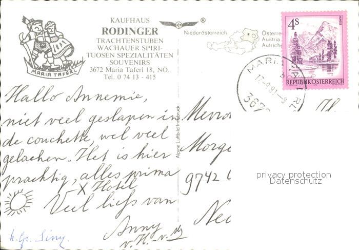 72093038 alte Postkarte Maria Taferl Kaufhaus Rodinger Trachtenstuben Panorama Kirche postalisch gelaufen Erhaltung siehe scans KatCode: 11390121031523