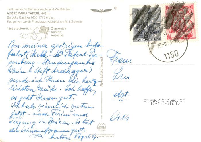 73644701 alte Postkarte Maria Taferl Wallfahrtsort und Sommerfrische Fliegeraufnahme postalisch gelaufen Erhaltung siehe scans [FriedD77] KatCode: 11390121031523