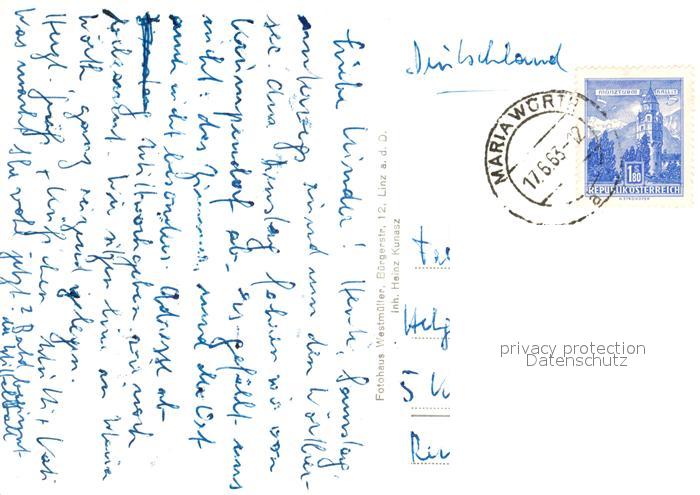 73354727 alte Postkarte Maria Woerth Woerthersee Fliegeraufnahme postalisch gelaufen Erhaltung siehe scans [WerneD78] KatCode: 11390211020419