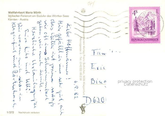 73297716 alte Postkarte Maria Woerth Woerthersee Fliegeraufnahme postalisch gelaufen Erhaltung siehe scans [PaolaD17] KatCode: 11390211020419