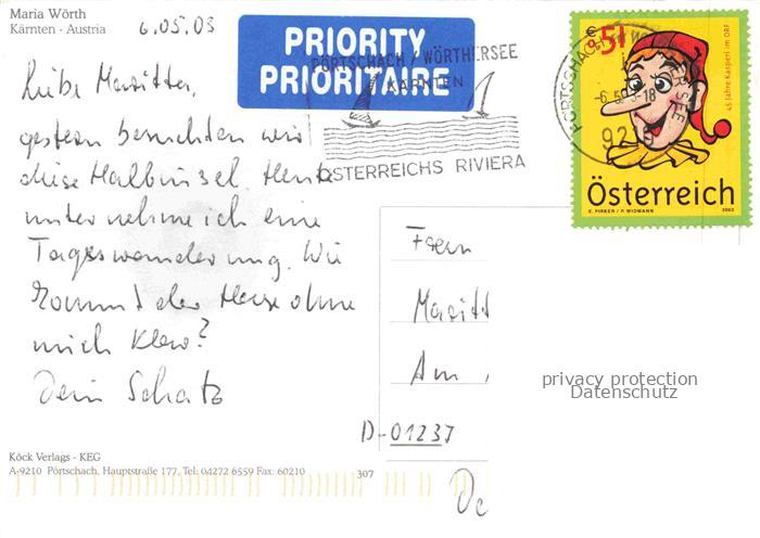 74023747 alte Postkarte Maria Woerth Woerthersee Kaernten AT Fliegeraufnahme postalisch gelaufen Erhaltung siehe scans [FriedD77] KatCode: 11390211020419