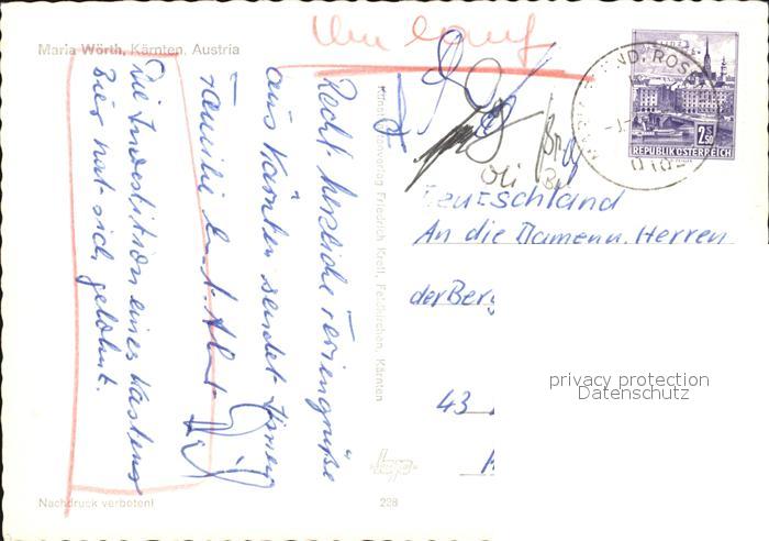 72437561 alte Postkarte Maria Woerth Woerthersee Wallfahrtskirche postalisch gelaufen Erhaltung siehe scans KatCode: 11390211020419