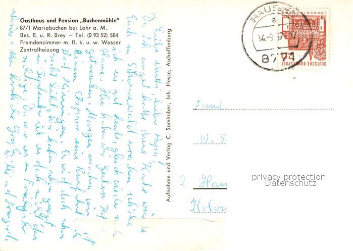 73129969 alte Postkarte Mariabuchen Gasthaus Pension Buchenmühle postalisch gelaufen Erhaltung siehe scans [KathaD81] KatCode: 11110009677155
