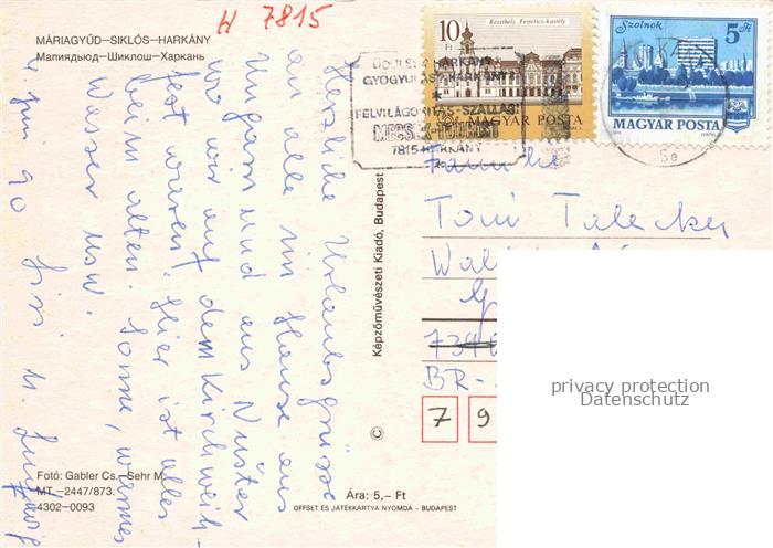 74006207 old postcard Mariagyued Siklos Harkany Thermalbad Kirche postalisch gelaufen Erhaltung siehe scans [FriedD77] KatCode: 11550