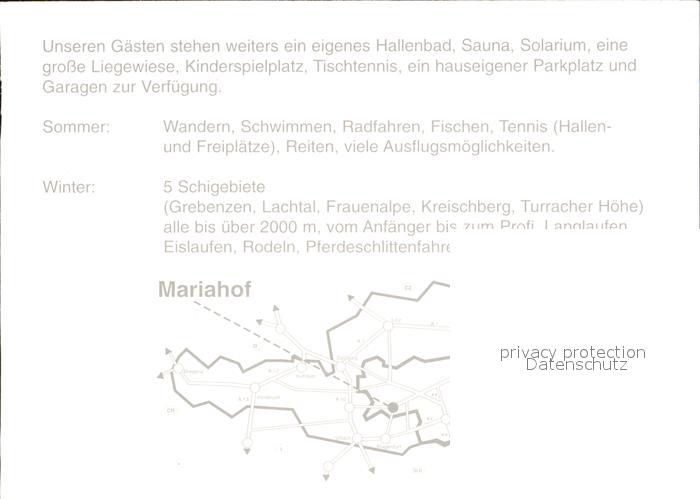 72468221 Mariahof Haus Lambach Hallenbad Naturpark Grebenzen See im Winter postalisch nicht gelaufen Werbekarte (keine Postkarte) Erhaltung siehe scans KatCode: 11390226061409