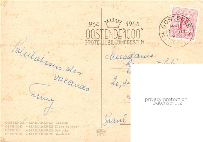 73358681 carte postale Mariakerke Oostende Zeedijk postalisch gelaufen Erhaltung siehe scans [WerneD78] KatCode: 11070035000481