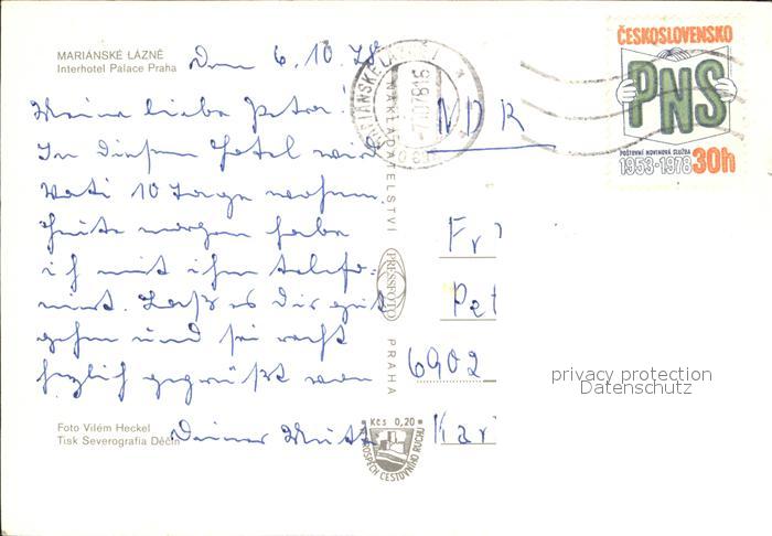 old postcard Marianske Lazne Interhotel Palace Praha postalisch gelaufen Erhaltung siehe scans