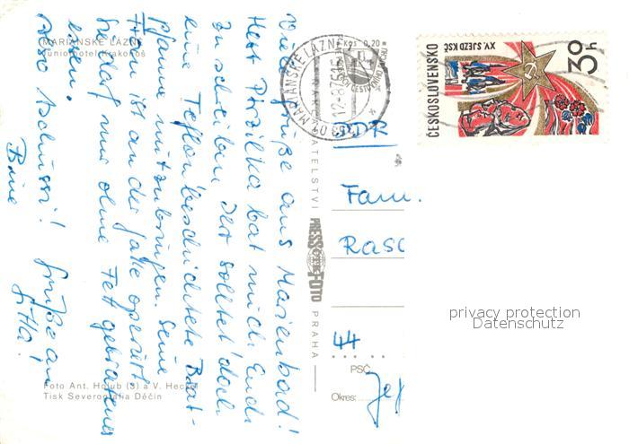 12935049 old postcard Marianske Lazne Juniorhotel Krakonos postalisch gelaufen Erhaltung siehe scans [AndreD76] KatCode: 11520
