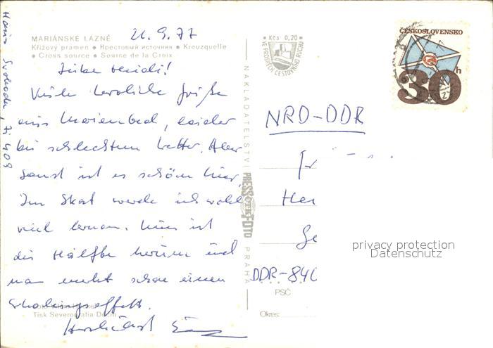 old postcard Marianske Lazne Kreuzquelle postalisch gelaufen Erhaltung siehe scans