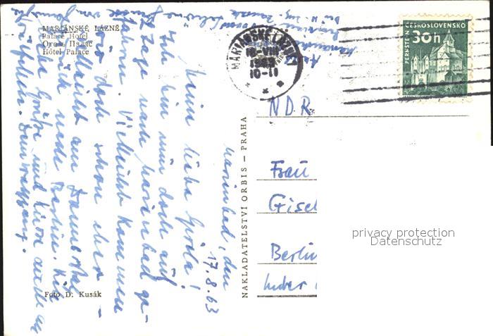 old postcard Marianske Lazne Palace Hotel postalisch gelaufen Erhaltung siehe scans