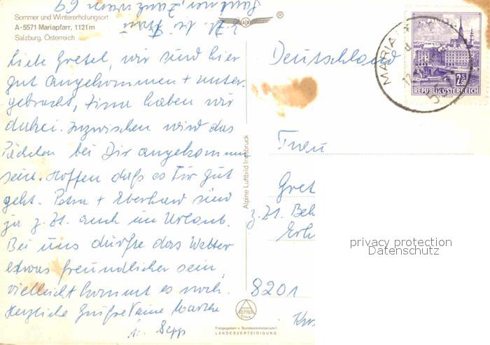 12603927 alte Postkarte Mariapfarr Fliegeraufnahme postalisch gelaufen Erhaltung siehe scans [LiesaD40] KatCode: 11390321050503