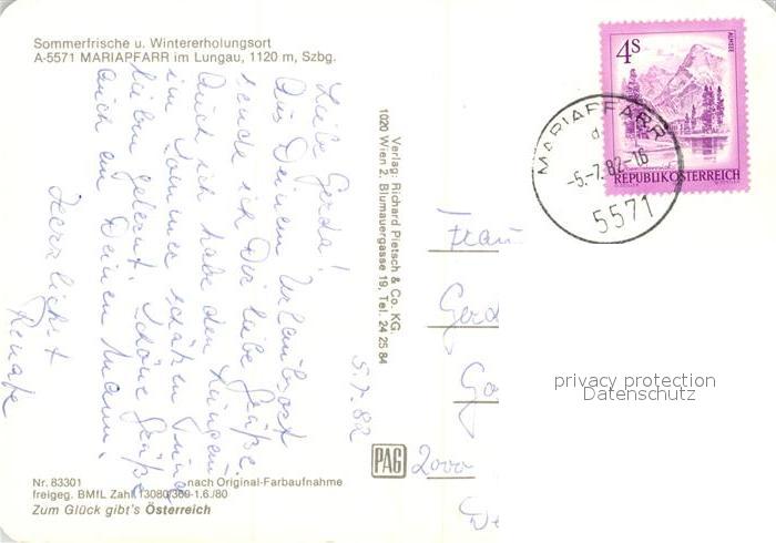 73125235 alte Postkarte Mariapfarr Fliegeraufnahme postalisch gelaufen Erhaltung siehe scans [NatalD47] KatCode: 11390321050503