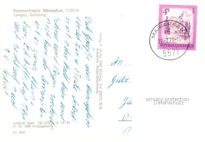 73052501 alte Postkarte Mariapfarr Fliegeraufnahme postalisch gelaufen Erhaltung siehe scans [NatalD47] KatCode: 11390321050503