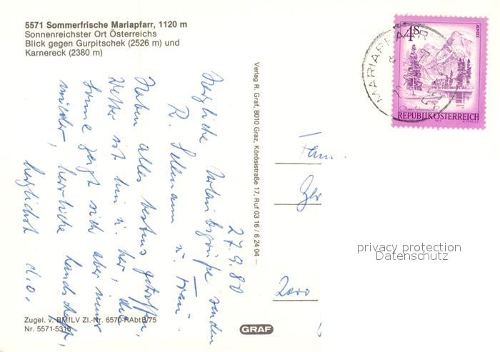 73185228 alte Postkarte Mariapfarr Fliegeraufnahme Karnereck postalisch gelaufen Erhaltung siehe scans [LiesaD40] KatCode: 11390321050503