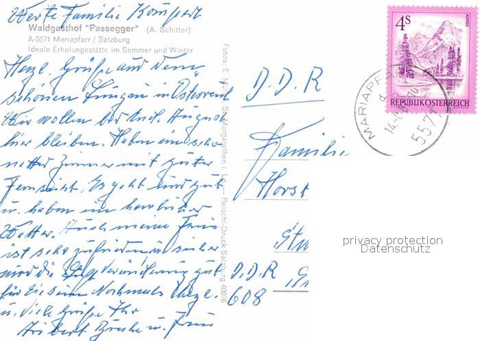 72729945 alte Postkarte Mariapfarr Waldgasthof Passegger postalisch gelaufen Erhaltung siehe scans [PaolaD17] KatCode: 11390321050503