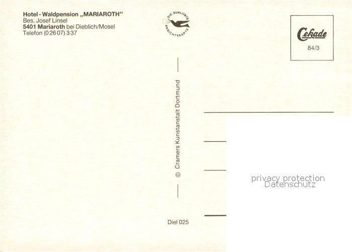 73731200 Mariaroth Hotel Waldpension Mariaroth Restaurant postalisch nicht gelaufen Erhaltung siehe scans [FriedD77] KatCode: 11110007137227