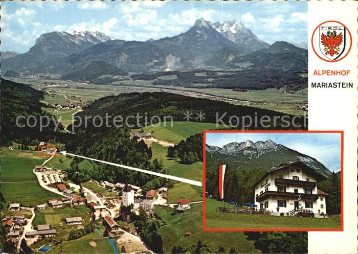 72483679 Mariastein Tirol Fliegeraufnahme mit Gasthof Pension Alpenhof postalisch nicht gelaufen Erhaltung siehe scans KatCode: 11390335070516