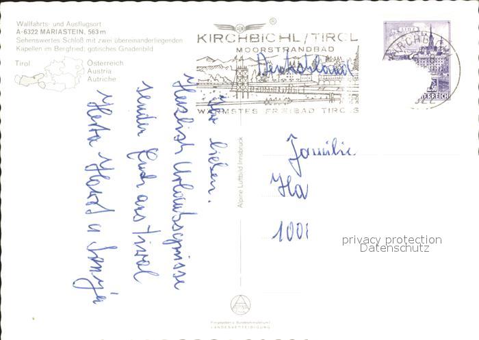 71822466 alte Postkarte Mariastein Tirol mit Kaisergebirge Fliegeraufnahme postalisch gelaufen Erhaltung siehe scans KatCode: 11390335070516