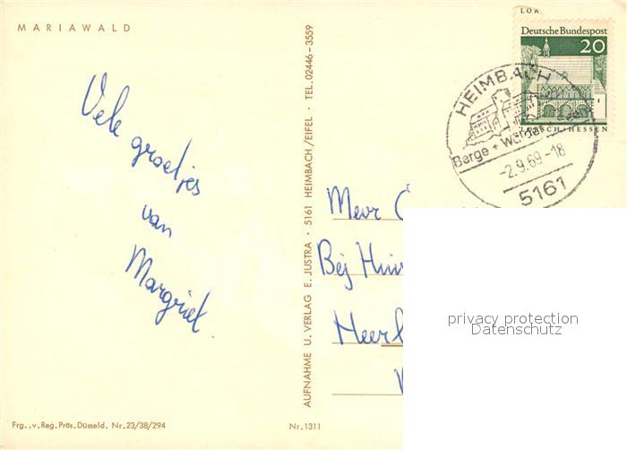 73306083 alte Postkarte Mariawald Fliegeraufnahme postalisch gelaufen Erhaltung siehe scans [WerneD78] KatCode: 11110005358024