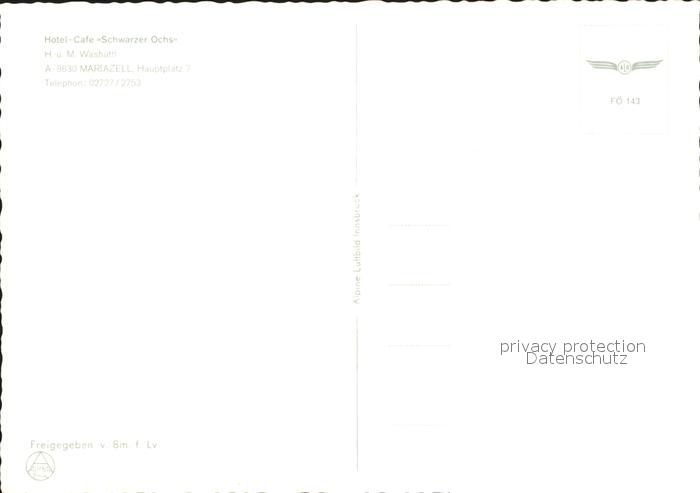 71972606 Mariazell Eschbronn Hotel Schwarzer Ochs postalisch nicht gelaufen Erhaltung siehe scans KatCode: 11110008325071