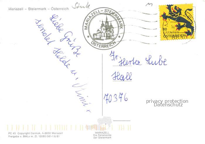74155992 alte Postkarte Mariazell Steiermark AT Fliegeraufnahme postalisch gelaufen Erhaltung siehe scans [WerneD78] KatCode: 11390223060210