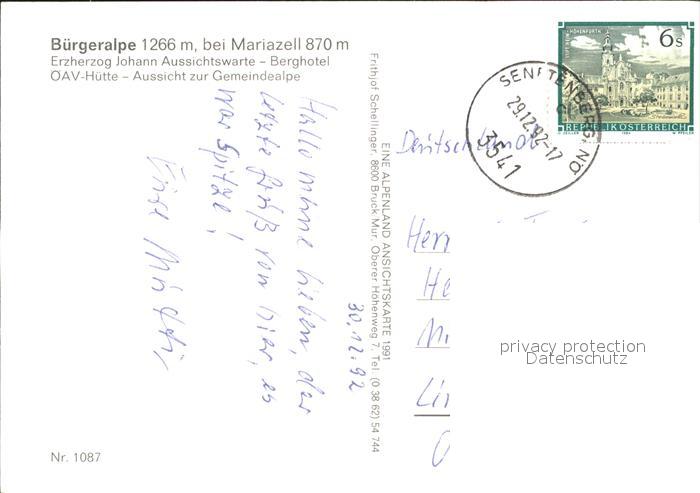 71952959 alte Postkarte Mariazell Steiermark Buergleralp postalisch gelaufen Erhaltung siehe scans KatCode: 11390223060210