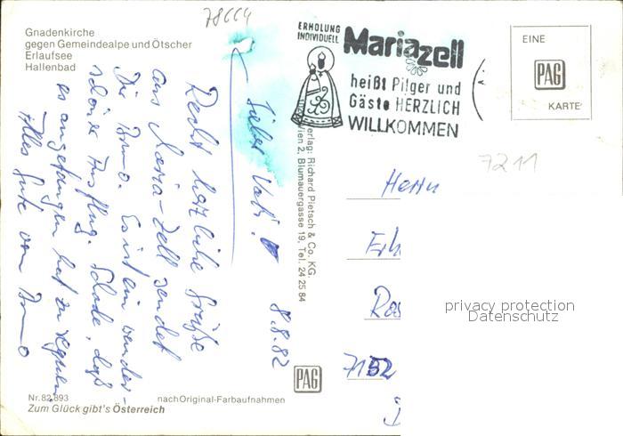 72438712 alte Postkarte Mariazell Steiermark Gnadenkirche Gemeindealpe oetscher Erlaufsee Hallenbad postalisch gelaufen Erhaltung siehe scans KatCode: 11390223060210