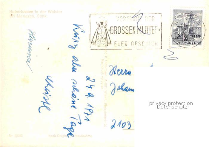 72624666 alte Postkarte Mariazell Steiermark Hubertussee in der Walster postalisch gelaufen Erhaltung siehe scans [WerneD78] KatCode: 11390223060210