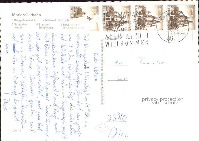 72063207 alte Postkarte Mariazell Steiermark Mariazellerban Kuhgrabenviadukt Saugraben Stausee postalisch gelaufen Erhaltung siehe scans KatCode: 11390223060210