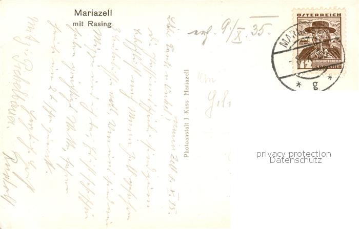 43093356 alte Postkarte Mariazell Steiermark mit Rasing postalisch gelaufen Erhaltung siehe scans [WerneD78] KatCode: 11390223060210