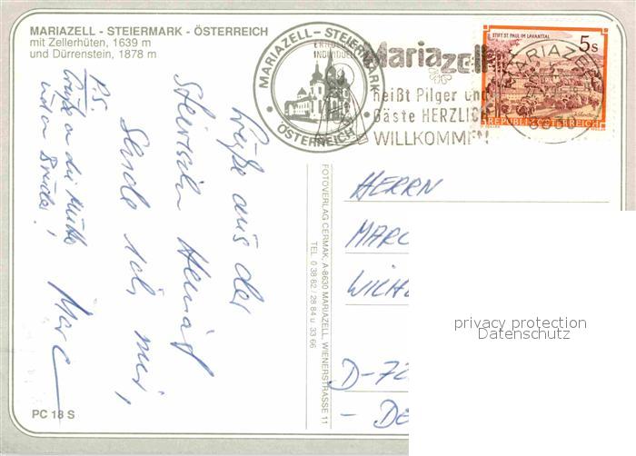 72762014 alte Postkarte Mariazell Steiermark mit Zellerhueten und Duerrenstein postalisch gelaufen Erhaltung siehe scans [WerneD78] KatCode: 11390223060210
