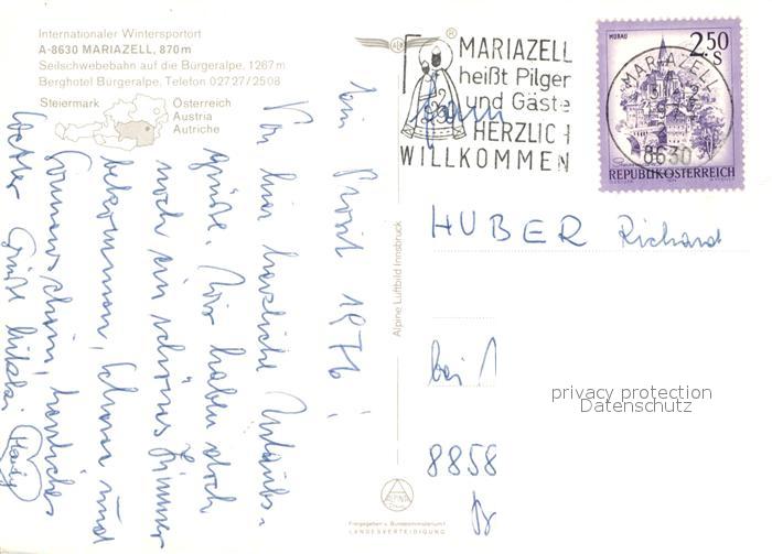 72948352 alte Postkarte Mariazell Steiermark Pistenplan Bergmassive postalisch gelaufen Erhaltung siehe scans [KathaD81] KatCode: 11390223060210
