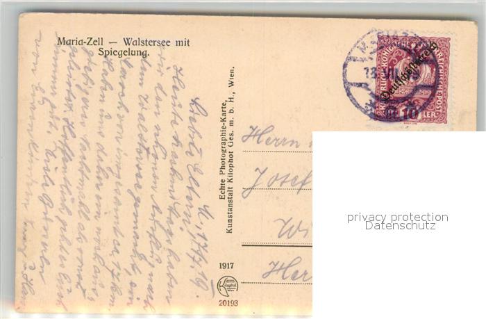 43078505 alte Postkarte Mariazell Steiermark Walstersee mit Spiegelung postalisch gelaufen Erhaltung siehe scans [WerneD78] KatCode: 11390223060210