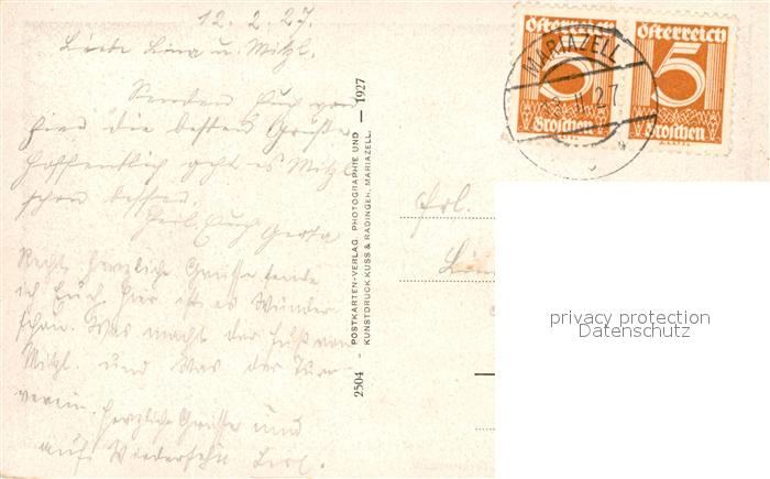 43055287 alte Postkarte Mariazell Steiermark Winteridyll mit Kirche postalisch gelaufen Erhaltung siehe scans [FriedD77] KatCode: 11390223060210