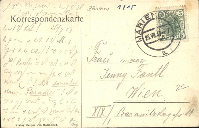 old postcard Marienbad Tschechien Boehmen Eingang zum Cafe Egerlaender postalisch gelaufen