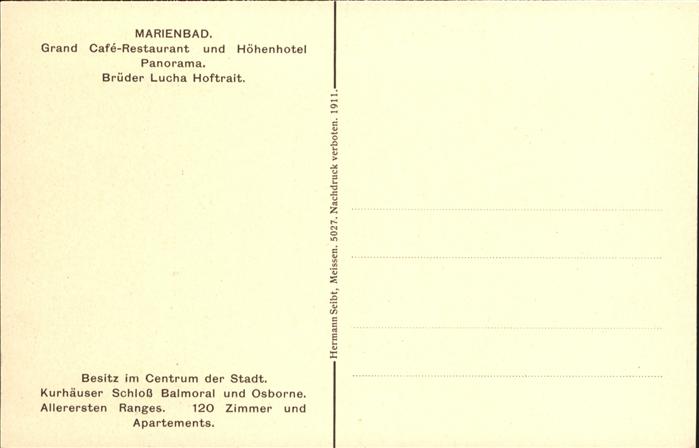 11308121 Marienbad Tschechien Boehmen Eingang zum Grand-Cafe Höhenhotel Panorama Böhmen KatCode 11520