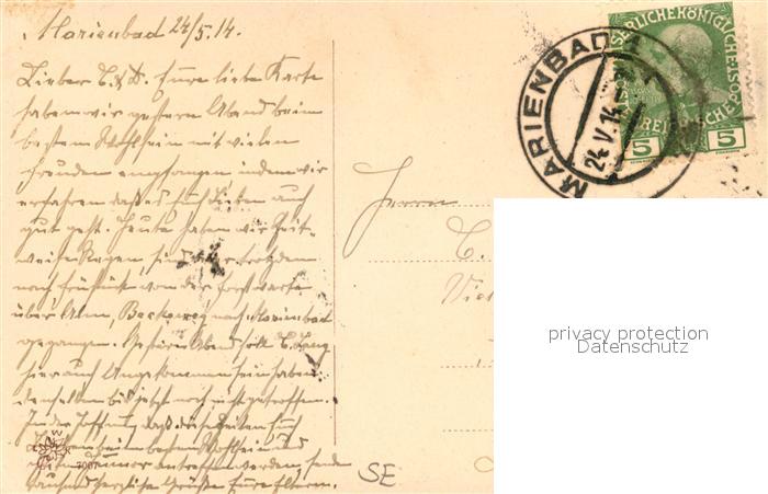 old postcard Marienbad Tschechien Boehmen Kaiser Franz Josef Platz postalisch gelaufen Erhaltung siehe scans [WerneD78]