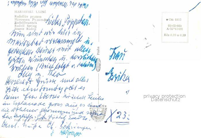 old postcard Marienbad Tschechien Boehmen Rudolfsbrunnen postalisch gelaufen Erhaltung siehe scans [KathaD79]