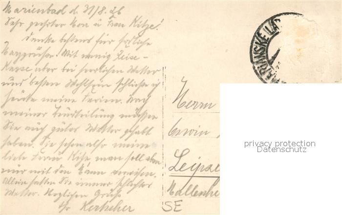old postcard Marienbad Tschechien Boehmen Teilansicht mit Cafe Egerlaender postalisch gelaufen Erhaltung siehe scans [FriedD77]