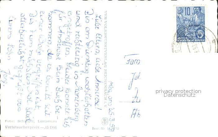 72470973 alte Postkarte Marienberg Erzgebirge Blick vom Galgenberg Kirche Markt HO Schnellgaststaette Zschopauer Tor postalisch gelaufen Erhaltung siehe scans KatCode: 11110014181260